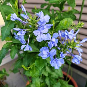 ルリマツリ💙 玄関内に入れてから 蕾がついて花が咲きました❀ 温度が保てたら冬でも咲くのですね🤍💙🩵💜🤍🩷🩵
