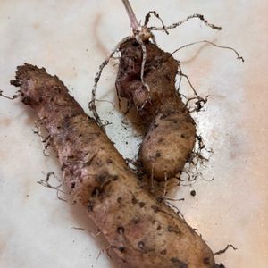 ヤマノイモ(自然薯)の種芋の消毒 消毒洗浄前の写真です あらかじめ水で泥を洗浄してから、薬剤洗浄しました 水≒2L ベンレート≒20cc (100倍希釈) 作業後は、きれいになりました