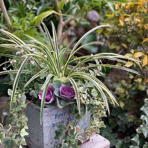 おはようございます。 今日はいいお天気になりそうです♪ 先週、寄植えのオリヅルランが凍傷に…😓 園芸店プレゼントのプリムラもあったので 仕立て直ししました(^^)