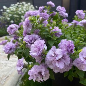 こちらのペチュニアは DCMブランドポンポン咲くペチュニア、ラベンダーです。 八重咲でとっても可愛い💕のですが、けっこう暴れてます💧 真ん中少ないので全体は写せません‥ 思い切って剪定して綺麗な形になるよう頑張ります😊