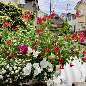 2投稿目失礼しますꔛꕤ お迎え記録🔖𓂃𓈒𓏸︎︎︎︎ ①②DCMポンポン咲くペチュニア🌸 育種家さんの素敵なペチュニアたくさんありますが、やはり上級者向けなのかうまく育てることが出来なくて、今年はメーカー苗を育ててみようと思いました。DCMのペチュニアは初めてです😁 ③欲しいお花を探しに少し足を伸ばした園芸店連れて行ってもらいました🚗³₃着けば単独行動です🤣 バックが雑乱として見にくくてすみません😅(まだ工事中なので) ❁⃘*.゚ニゲラミスジーキル ❁⃘*.゚ラークスパー かぐや姫 ❁⃘*.゚オステオスペルマム プリンセスティアラ ❁⃘*.゚ベロニカ マダムマルシア ❁⃘*.゚ベロニカ オックスフォードブルー ❁⃘*.゚姫オダマキ 八重 ベロニカはもう売ってないかなぁと思っていたらあったし、ピンク八重の姫オダマキも見つかって♪( ◜ω◝و(و "ルンルン♡ 昨春にお迎えしたオステオスペルマム、✂️するタイミング逃してボサボサのまま冬越ししてから少し✂️したのでお花咲きません💦 なのでまたピンクの可愛い子お迎えしてしまいました🥰 また後日UPしますꔛꕤ ④⑤寄せ植えモリモリしてきました リングの寄せ植えは失敗😞 お花開花のタイミング合わず😂 葉牡丹、お花咲いちゃった🌼