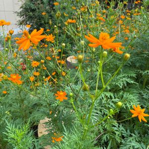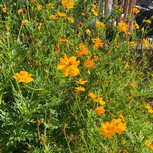駅前の小さな花壇でキバナコスモスがたくさん咲いていました。和みます