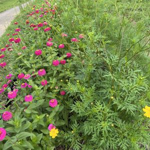 ジニア、黄色コスモス、コスモスの順に三列にタネ蒔いたら黄色コスモスが巨大化してコスモスに日が当たらなくなってしまう😅ということで、黄色コスモスを少し切り戻し。 捨てるのもったいなくて花瓶に入れたらいい感じ✨と思ったら娘からご飯食べる時に邪魔そうだねの一言😂仰る通りです😂これしか花瓶がないのだ