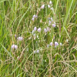 先日の収穫✨ ツリガネニンジン✨ 釣鐘人参 キキョウ科 北海道~九州の各地に分布するキキョウ科の多年草 山地の草原や林縁、堤防などでに育つ 日本のほか、朝鮮半島や中国にも分布 根っこが漢方で使われるチョウセンニンジンに似ることから ツリガネニンジンと名付けられた ツリガネは「釣鐘」で花の様子から ニンジンはセリ科でチョウセンニンジンはウコギ科であり 分類上の関連はない ツリガネニンジンの開花は8~10月で 茎の上部に3~5輪ずつ、数段にわたって咲く 花は細長いベルのような形で 長さは1.5~2センチほど 外に突き出すのが雌しべ(柱頭)で その周りには5本の雄しべがある 花の色は白から淡い紫まで変化に富み また、柱頭が飛び出さない個体もある とのこと 庭木ペディアより引用 出会いたいと思っていたお花 ツリガネニンジンに出会えました☺️ 優しい薄紫色のベルでした💜 2024.8.6撮影 🏷️山野草 🏷️山野草大好き 🏷️癒しの薄紫 🏷️青い花マニア 🏷️美しく青きドヨウ 🏷️スライドショー♪ 🏷️パワーをあなたに 🏷️みんな負けないで! 🏷️葵い土曜日 🏷️ユーミンつながりの皆さんに感謝 参加いたします☺️