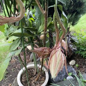 ①実家の月下美人に異変‼️ 双子発生‼️ 長年育てているが双子は初めてとの事 でも同じ日の開花にはなりそうにありませんね🌼🌼 ②20:30撮影 我が家は今年3回目の開花で2輪 🌼🌼 やっと見られました👀
