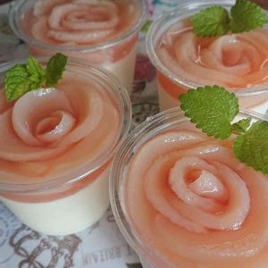 桃のコンポートのムースとゼリー薔薇🌹仕立て~ レモンバームとミントを乗せて とっても美味しい福島の桃が手に入ったので作ってみました😋 自宅のミントやレモンバームはケーキの飾りにしか使っていなかったけど、今朝ミント水にして飲んだらとっても爽やかな気分に✨