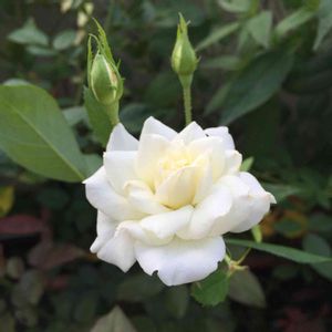 秋バラは花の寿命が長い。 ゆったりと花姿を楽しませてくれます。 色褪せない白に安らぎを感じます。