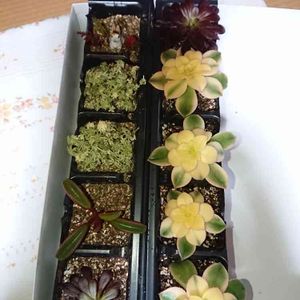 こんばんは🌟 令和初の二和園で燃え尽き、クタクタですがGSでは元気いっぱいな雰囲気で行きたいと思います(▪︎⌔︎▪︎)ゝ‼️(笑) ハウスに着くやいなや、フォロワーのベランダ大好きさんに遭遇なのです(๑°ㅁ°๑)‼✧ 朝のpostを見て下さったのかと思いましたが、なんと全くの偶然いらしたそうです❗️ 歓喜、いやむしろ大歓喜であります٩(*>▽︎<*)۶✨(笑) さて、そろそろ…気になっている方もいるかも知れないし、全くいないかも知れない戦利品お披露目の時間です(๑•̀ㅂ•́)و✧ 夕方picは 「令和初の二和園戦利品」 実生ロメオ…500円 ペペロミア グラベオレンス…300円 ポーチュラカ ウェルデマニー、タキベリア、桃太郎…各200円 ポーチュラカリア 雅楽の舞…一本100円 🙌以下ハイテンション注意🙌 実生ロメオ、まさか二和園にこんなお宝が‼️ しかも500円‼️‼️ 買うしかないッ‼️‼️‼️ グラベオレンス、これもなぜ二和園にーーー‧˚₊*̥(∗︎*⁰͈꒨⁰͈)‧˚₊*̥ ずっと欲しかったやーつ✨ これも買うしかないなぁ〜‼️ ウェルデマニー、ポーチュラカのブームがいきなりキタ━(゚∀゚)━! って事でお買い上げ💕 モケモケ可愛い(๑˃̶͈̀ω˂̶͈́๑)❣️ タキベリア、色が綺麗でつい…(>艸<。)💦 色合いがおらいさんのミックスベリア 夕波に似てるかな〜って(๑´ڡ`๑)テヘ🎶 私タキベリア大好きなんだな〜もう何個買ったのか(笑) 桃太郎、なぜか気になり購入🍑 また桃太郎増えたʬʬʬʬʬʬʬ てか気になって連れて行ったら桃太郎だったって言うꉂꉂ(๑˃▿︎˂๑) 雅楽の舞、本日の本命❗️ 可愛くて元気なのがありました🎶 …って…アレ❓ 何で…こんなに買ってるの…❓ 朝さ…雅楽の舞だけ買うって言ってたのに… 朝 ・ 令 ・ 暮 ・改 💗(笑)