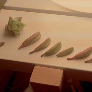 葉挿しのトレーです🌱 真ん中のペペロミアグラベオレンス、親株は元気だけど、葉挿しも芽挿しも水耕栽培も一向に根が出ず…。 何か特別なやり方が必要なのかなぁ。