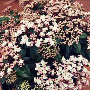 前回のレッスンで残ったビバーナムを水挿ししていたら、お花が咲きました。蕾のまま使うことが多いので、咲いたところは初めてかも。可愛らしい。