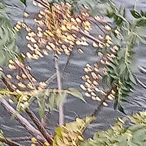 果実の大きさ直径1cm程 秋🍂が深まり落葉し 黄褐色に熟します🎶 葉が落ちた後〰︎ よく目立ちます🤗 栴檀(せんだん)果実 センダン科