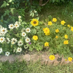 マリーゴールドに紛れてひまわり咲いた🌻