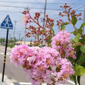 会社の帰り道の街路樹のサルスベリの木に花が咲き始めてました。 青空にピンクの花が映えますね。 ^ ^