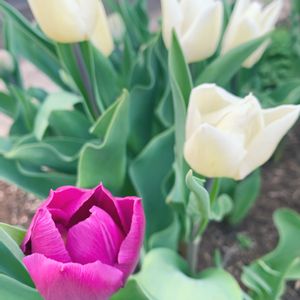 咲いたチューリップ🌷をプレゼント🎁しようと思いたちご近所の奥さまのもとへ→→→→→→→→その奥さま家の前で車を🚗側溝に落とし中だった😅