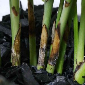 フロスティー石化の根本から黒いシミのようなものが広がってきました。病気でしょうか? レース越しの窓際で管理しています。 水はけのよい土に変えて様子を見ているのですが、原因と対処方法が分かりません、、、。
