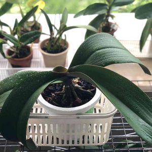 💗胡蝶蘭 大輪 ピンク💗 昨夏、植え替え失敗した大輪胡蝶蘭。 回復して❤️🩹今季2枚目の葉を出しています。 根量の多いタイプで、5号鉢では小さい💦