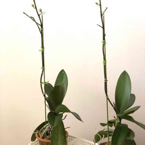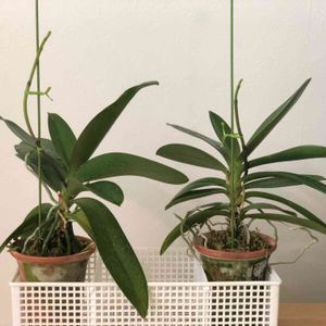 ❄️ミニ胡蝶蘭 なごり雪❄️ 花芽が伸びて来ました✨ 左の1号は太い花芽1本、右の2号は初めて花芽2本😆 楽しみです♪