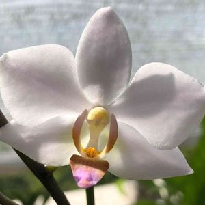 ❄️ミニ胡蝶蘭 なごり雪❄️ ベランダで水やり中にパチリ🤳 すぐ室内へ戻しました。