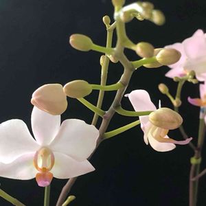 ❄️ミニ胡蝶蘭 なごり雪❄️ 異常な高温から室内避難中の蘭達。 2株育てているミニ胡蝶蘭なごり雪は花茎が長く伸びて 小さな蕾が出て来ました✨ 今月中に開花しそう?早い? 🏷今日のお花