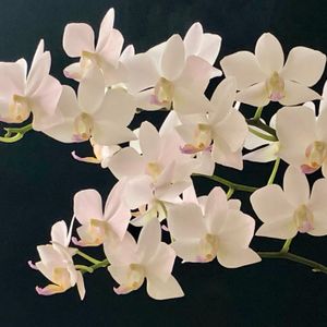 ❄️❄️ミニ胡蝶蘭 なごり雪❄️❄️ 2-1 満開に✨ 先月上旬から咲き始め、約2か月間楽しませてくれました。切花にして更に1か月くらい持ちます。切った花茎の先端に新たな蕾が出る事もありますが、今回は?