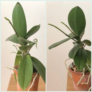 ❄️❄️❄️ミニ胡蝶蘭 なごり雪 株姿です✨ 今年もいっぱい咲いてくれそう 3号素焼深鉢、株の高さは40〜45センチくらいです。 花後に植え替え予定。
