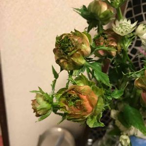 結婚記念日に主人からもらった花。1種類だけ名前が分かりません。この子は何ていう名前なんだろう。ご存知の方、いらっしゃいませんか?