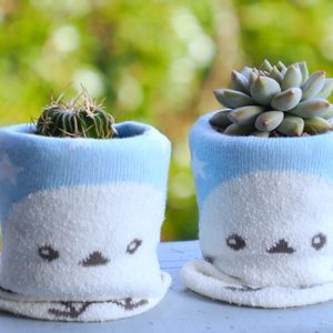 鉢カバーシリーズ。 ちっこい子たちの鉢カバーは靴下で。 これも百均で見つけた シマエナガの靴下なんですが… ゴマちゃんにも見えますな。 いずれにせよ可愛くて重宝しています。