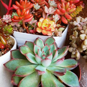 今日は風が強いので玄関ポーチの中で日光浴中の多肉たちです✨💚✨