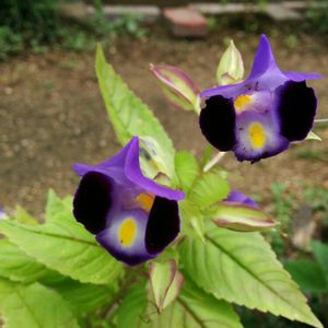 フェンス前のトレニアさん♪ 風でゆらゆら🍃 頭を揺らしてます🎹