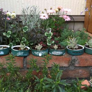 夏祭りに販売するリメ缶達。 9月にリメ缶作りと多肉の寄せ植えのイベントを学校でするので、係わる役員に作り方を教えて、それぞれ作って持ち寄りました。 それを宣伝も兼ねて夏祭りに販売します。 売れるといいなぁ😆💕