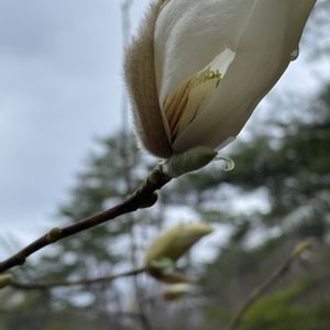 「モクレン」今日の花。4月4日自然観察の森にて。 開きかけで、中のシベが少し見えています。