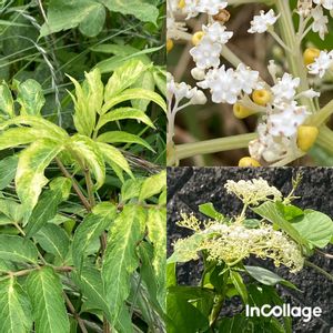 蒴藋 ソクズ 別名 クサニワトコ レンプクソウ科 ニワトコ属 分布 本州 四国 九州 在来種 多年草 高さ 1〜1.5m 茎の先端に大きな散房状集散花序で白い小花を多数つける。 花冠 径3〜4mm 花序の中に杯状の黄色い腺体がある。 果実 径4mm、赤く熟す。 漢方名は サクダク リュウマチの治療に用いられる。 ⬅️ 撮影 5/30 名前が分からなかった。 ↗️↘️ 撮影8/29 気になっていたので見に行きました。 沢山あったのにほとんど刈られてましたが2株、葛に覆い被さられながら 花を咲かせていました。 真っ白い花の中に黄色い腺体がポツポツとあり爽やかで可愛いお花です。