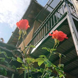 💛青空に向かって、のびのびと、薔薇が咲いています~✨ ✨今日も良い1日を、お過ごし下さい※。.♪:*:・'°💛