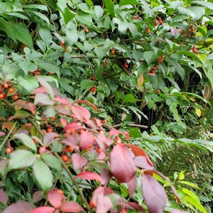 【ピラカンサ】 連投失礼します🍁🍁🍁🪆🍁🍁🍁 サンゴジュの葉も美しく紅葉してました。その隣で陽が落ちる前に余りにキラキラ美しく輝いてた実❇︎❇︎❇︎たわわに実りはじめているピラカンサスさんです✨✨🐈🤍♪