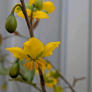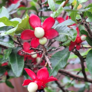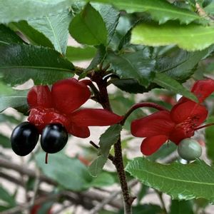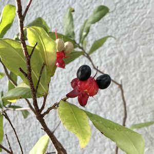 【ミッキーマウスの木】《オクナ科》 花言葉 「陽気」「快活」「楽しい」「心躍る」 別名 オクナ・セルラータ 黄色い花が咲いた後 ガクが赤くなり実がつき そして黒い実となる