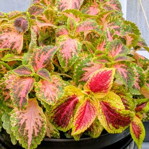 こんにちは(#^.^#)💦 ・コリウス🌿さん、モリモリ🌿( 種まきっ子) ・ブルーライト🌹 ・今朝のくっついき朝顔🩵さん
