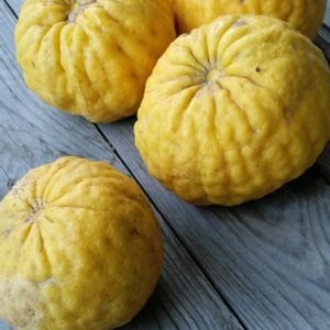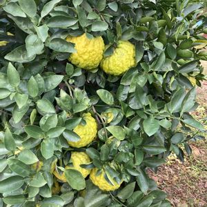 『獅子ゆず(鬼ゆず)』 巨大な柚子? と思ってしまいました。 見事な大きさです‼️ ゆずと比較した写真が撮れないのが残念です💦😅 …奈良 法華寺にて 獅子柚子(ししゆず)は中国が原産、奈良時代に日本に伝わったそうです。 《獅子や鬼は邪悪のものを排除するため、縁起物とも言われており、お店に飾ったりされることもあります。 見た目が獅子の顔のような形、 また鬼の顔のような形からそのように呼ばれています。 ゆずの仲間ではなく、 ブンタンの仲間になりますので、香りはゆずのような強い香りはありません。 観賞用として利用される場合も多く、 生食用には向きませんが、ピール、砂糖漬け、マーマレードなどに使われています。 また、実が大きいことから、実入りが大きい→千客万来の縁起物としても重宝されています。』 ★観音山フルーツガーデンHPより ★ 法華寺由来 奈良時代、聖武天皇が創建した総国分寺の東大寺に対し 、光明皇后により父・藤原不比等の邸宅跡に総国分尼寺として創建された… …