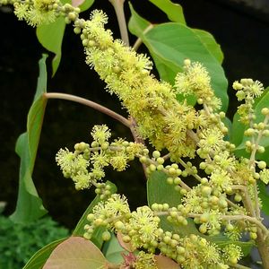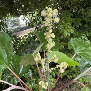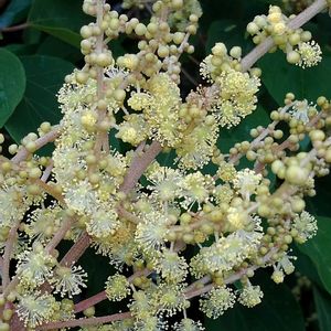 近所の庭に生えてる木です。細かな花が一杯咲いていました。名前を教えて下さい。