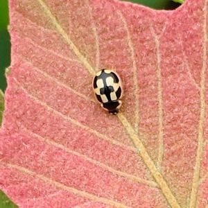 2投稿目 アカメガシワの葉っぱに 🐞ヒメカノコテントウ発見👀 (コカメノコテントウかも⁉️) アブラ虫を食べてくれる益虫だそうです。 花も綺麗ですね✨ 🏷️金曜日の蕾たち