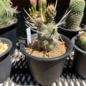 いつも行くお花屋さんで、「お初✨️」なサボテンさんに出会いました💓 昨年「信楽焼祭り」で購入した鉢におさまって頂きました🤭 「テフロカクタス・アーティキュラータス」(和名長棘武蔵野?) サボテン科テフロカクタス属 白いペラペラのトゲの根本に細かいトゲがあるので、要注意⚠️です😲