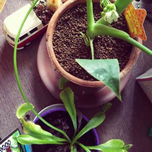 おはようございます! 陽射しがなくていつもより過ごしやすい朝ですが、湿気は高いですね(@_@。 今日は食虫植物が花を咲かせました! 名前とは裏腹に白くてかわゆい花でした。 朝からいろんな植物にたっぷり水浴びさせました。でもでもムレが心配!晴れるならカラッと晴れて欲しいな。