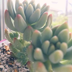 おはよう☀🙋❗ございます😆💕✨ 今日は、曇り☁でも、暑くなる😱☀予報 以前、投稿した同じ多肉ちゃん、色が可愛くて💕好きだったのに、ジュレってしまい😭残った葉を葉押ししたけど、駄目でした😵💦 新しく2号をお迎えしました🙌フォルムがとっても可愛い💕です😆⤴💓 今度は、失敗せず、大きくしたいです。