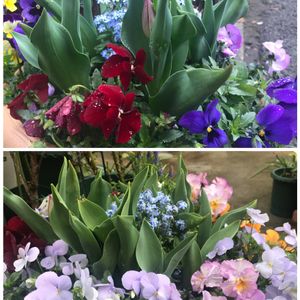 チューリップ 今日は冷たい雨です。朝、あられも降りました。 昨日は20℃越え、今は6℃、最後の寒さの洗礼です。 秋に植えたチューリップが、 パンジーや忘れな草の間から、出てきました。 春がやって来ましたね・*:..。o○☼*゚