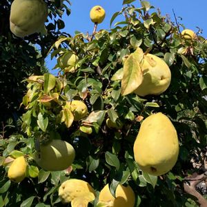 こんにちは😊 本日2投目です🙏 秋晴れ🍁🍂 いいお天気☀️.° 今日のお花 💠 カリン 💠 ご近所さんのカリン やっと色づいてきました🍐🍐💛