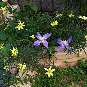 クレマチス「アラベラ」とコレオプシス「ムーンビーム」 雑誌に載ってたコンビネーションを真似っこ⤴️😄