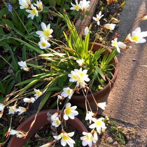 白い花咲きました 気温が上がると次々と花開きます😊3枚目は花友さんから頂いた可愛い勿忘草のような花 オンファロディス種がお臍のように丸い事から付いた名前だそうです💕