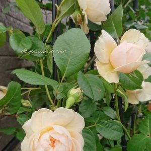 朝の光を木漏れ日で受けていたつるジュリア🌹 壁際でとても美しく咲いていました。 濃いめのベージュにうっとり(艸´v`**゜