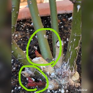 4年目のジュビリーセレブレーション シュートが二本出てました。 気分アップ⤴️ですよね、 今年はどんな風に咲くのかなぁ 楽しみ〜