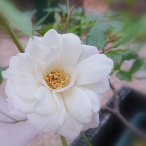 薔薇の「木」になっているこの子🌹 名前はわかりませんが可愛い花です。 朝から咲き進んでくしゅくしゅになっている姿も可愛いです😌