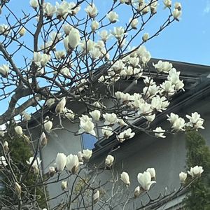 💠今日の花💠 コブシの花 街路樹のコブシが咲き出しました。車🚗の中から携帯📱で撮影しています。①②枚目は👀、赤信号待ち ③④⑤枚目は、👀走っている最中に(もちろん助手席から)